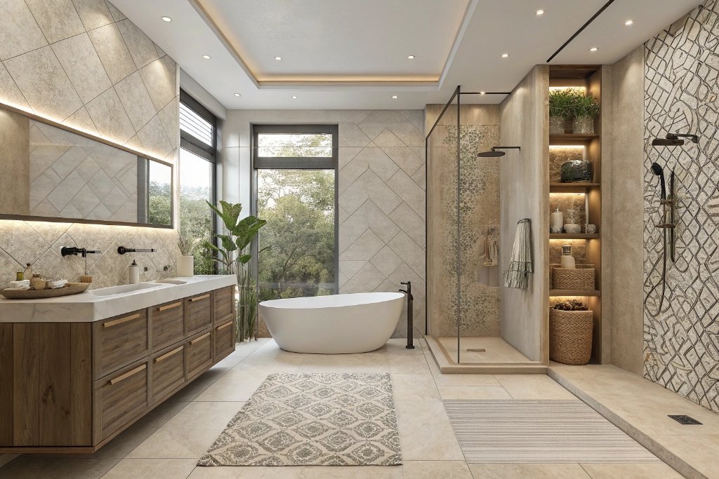 3. Open Concept Design: In larger bathrooms, integrating a freestanding tub within a spacious walk-in shower—creating a true wet room—offers a luxurious, open, and minimalist aesthetic.