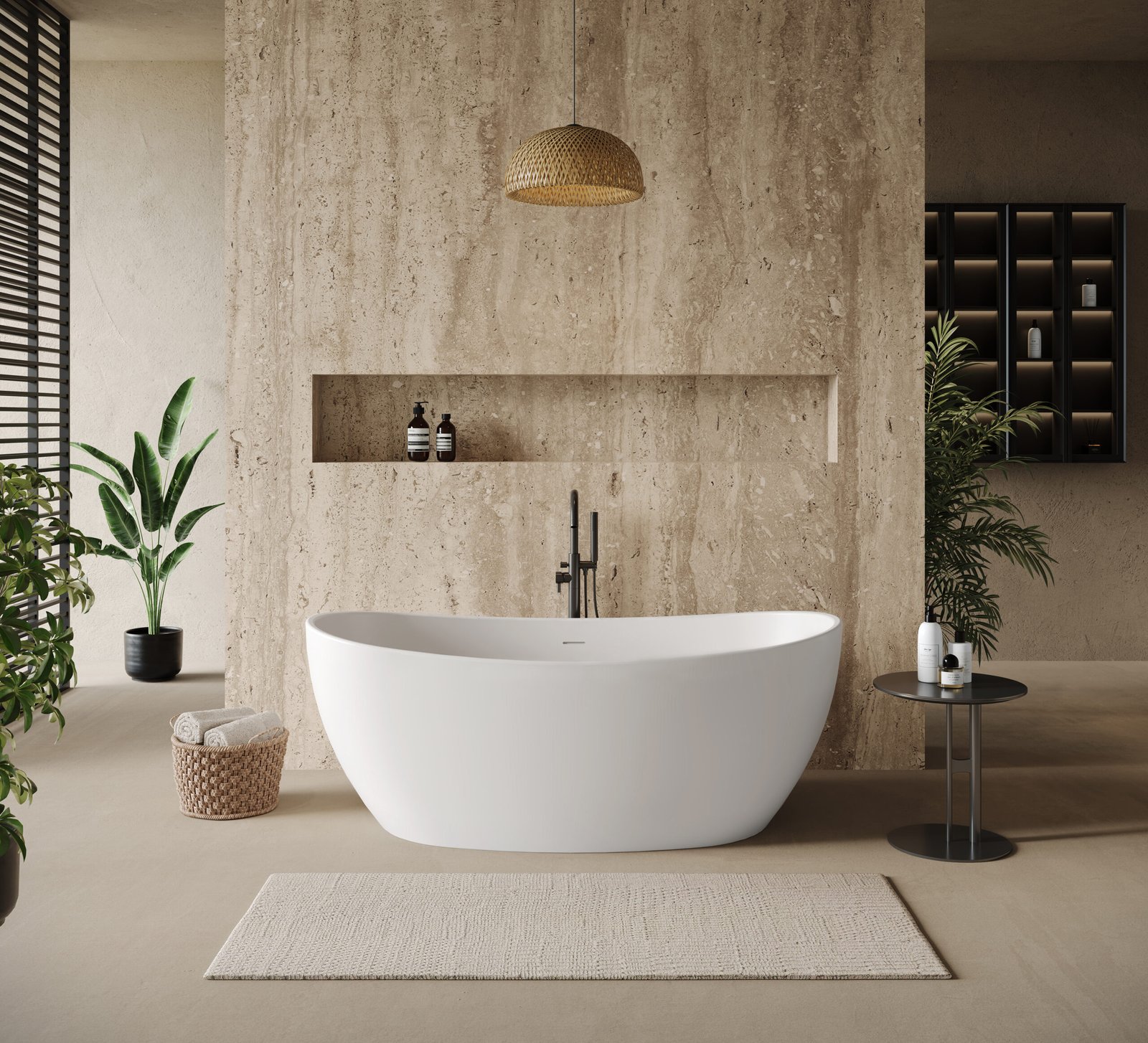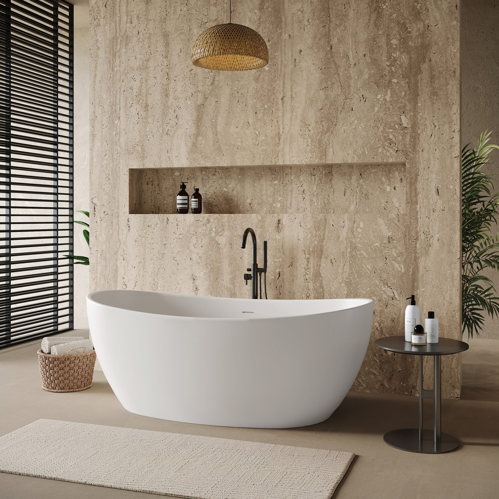 This oval acrylic bathtub embodies balance and simplicity. Its perfectly symmetrical curves create a natural sense of harmony, while the deep soaking space allows full-body immersion for a truly restorative experience.