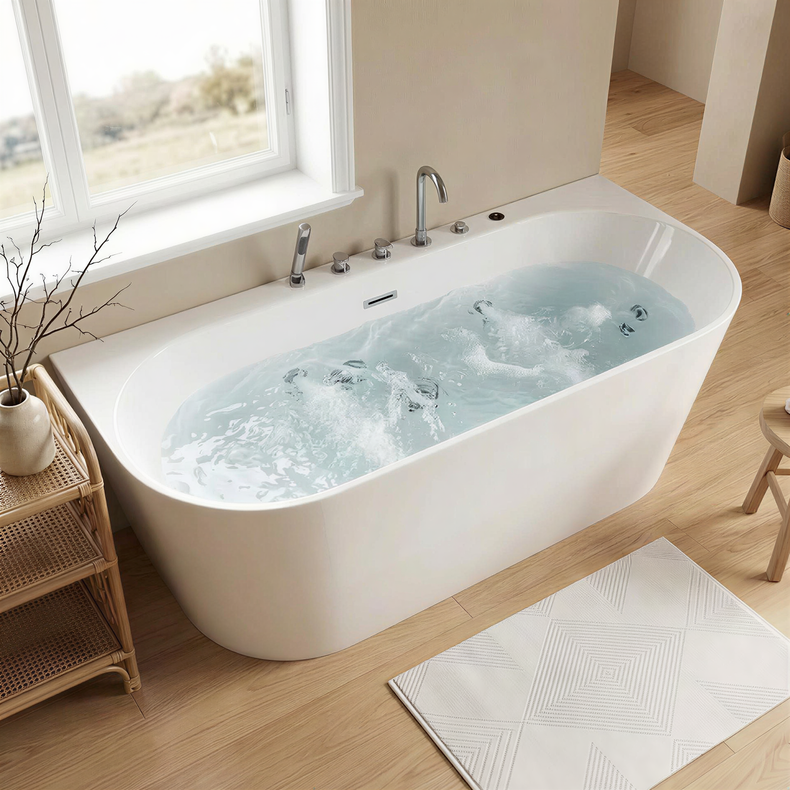 The bathtub is vacuum-formed and hand-polished for a flawless finish. No visible seams or rough edges—clean, safe, and elegant in any bathroom setting.
