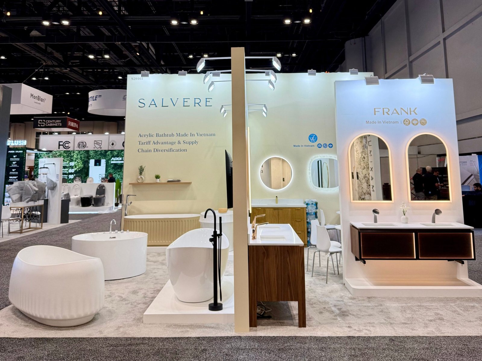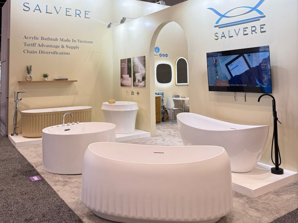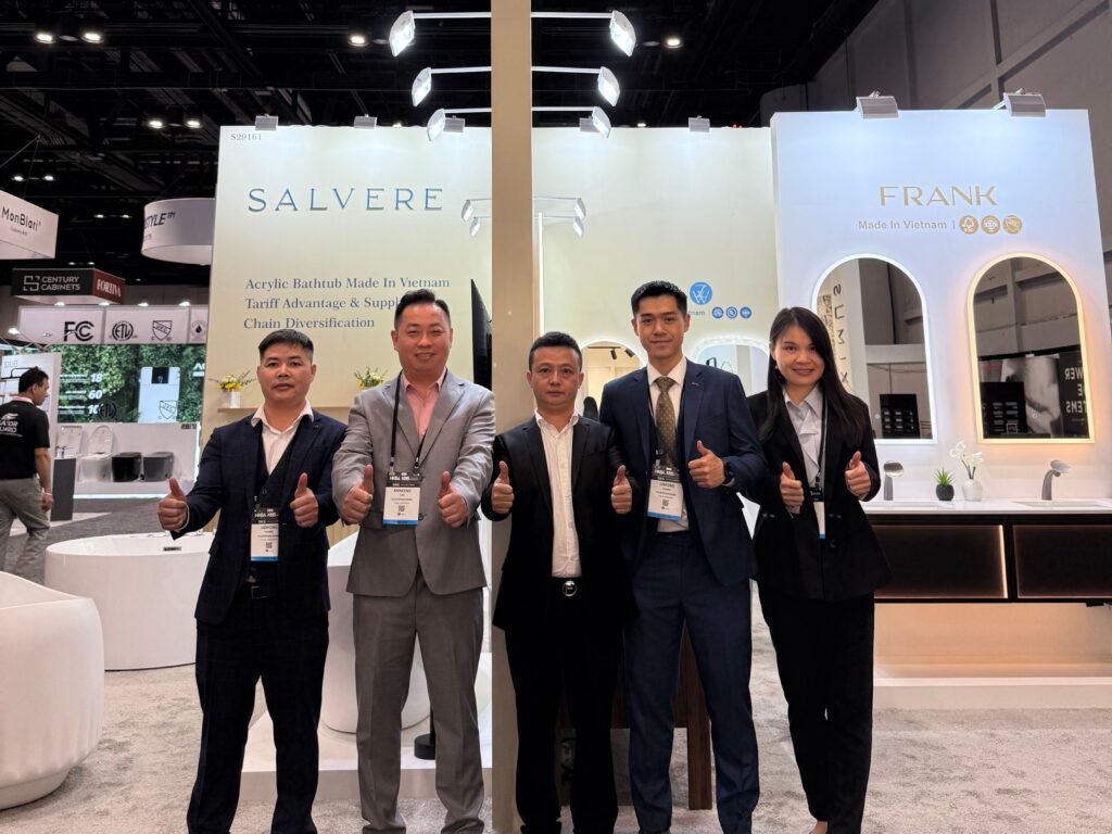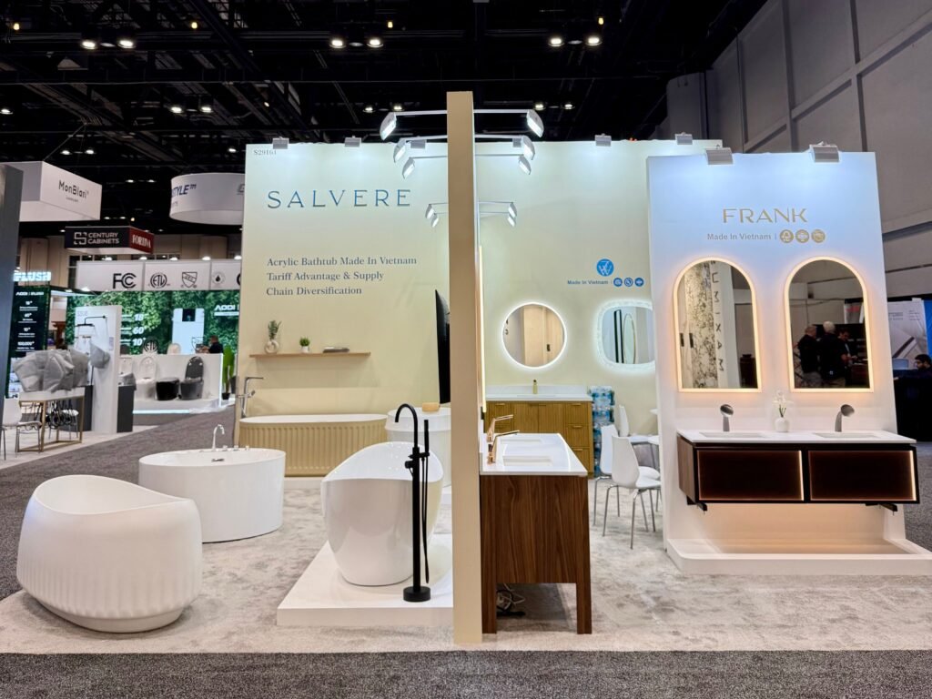 This year, we had the opportunity to showcase Salvere’s acrylic bathtubs, FRANK’s bathroom vanities, and ZW’s mirrors—all proudly manufactured in Vietnam.