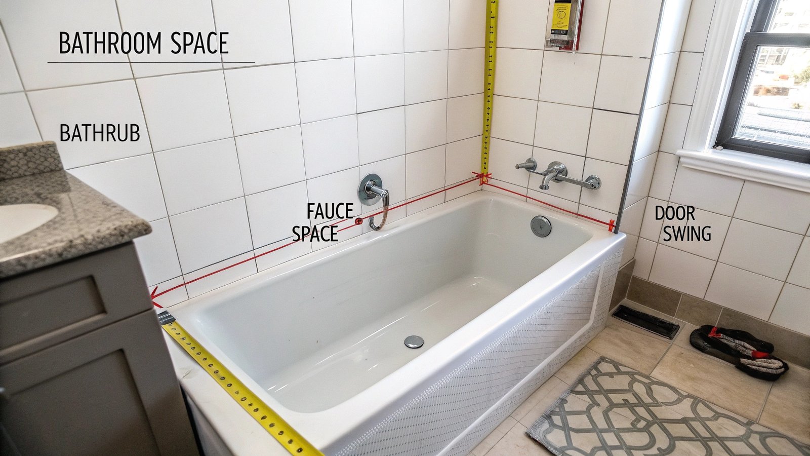 Proper measurements ensure the bathtub fits comfortably without overwhelming the room. Consider length, width, and height, factoring in floor incline or tile thickness.